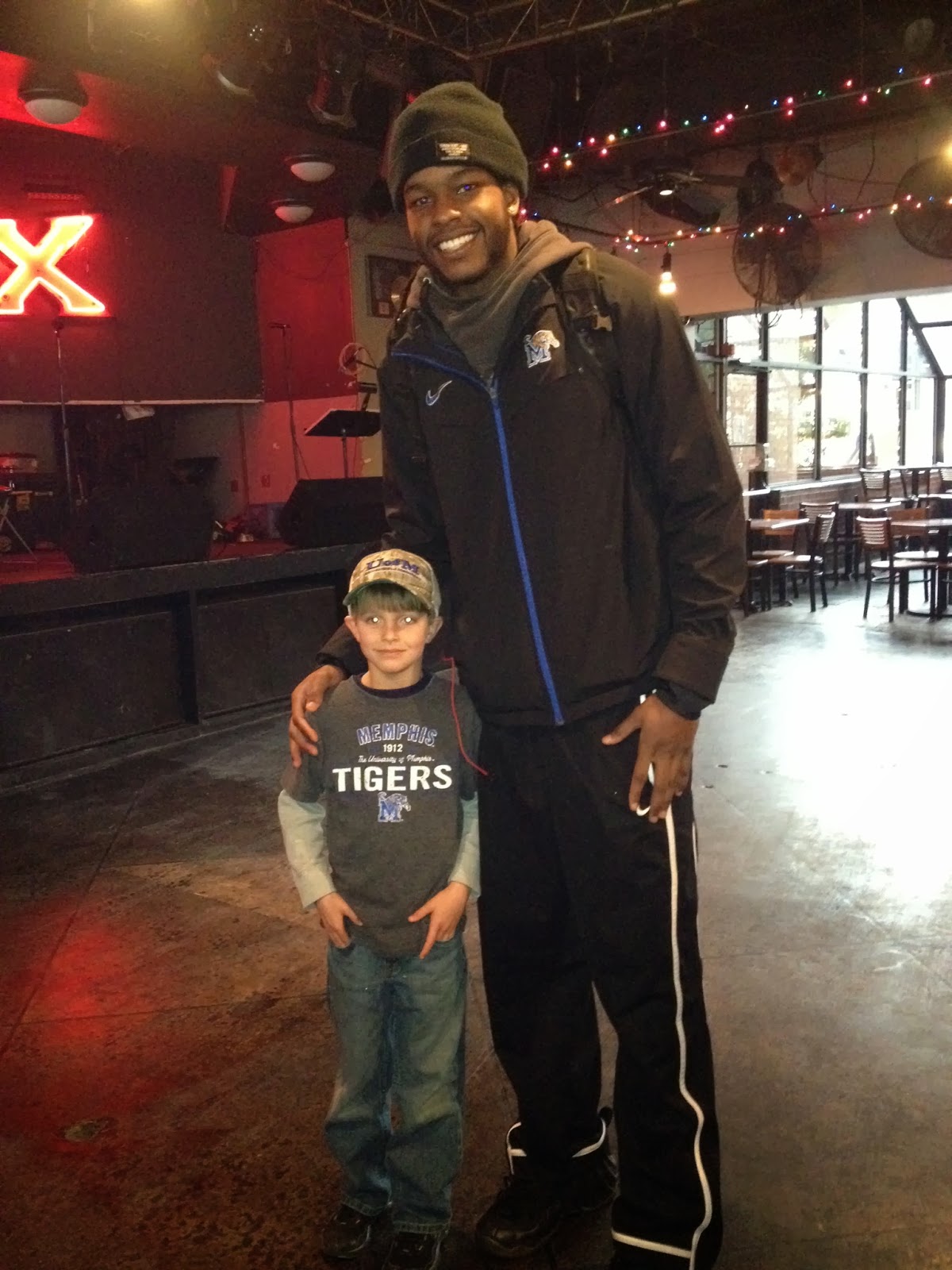 What a fun surprise to run into several Tiger basketball players after a game a few weeks ago. Kate loves "Austin Nichols"..we went to see him play a couple of high school games last year and she just remembers the name, so his first game at the Forum, when we would say his name, she would say "Austin Nichols doesn't play here!!" She was quite shy at meeting him! Fun!!
